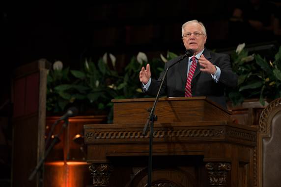 Pastor Lutzer preaching from the pulpit of The Moody Church.